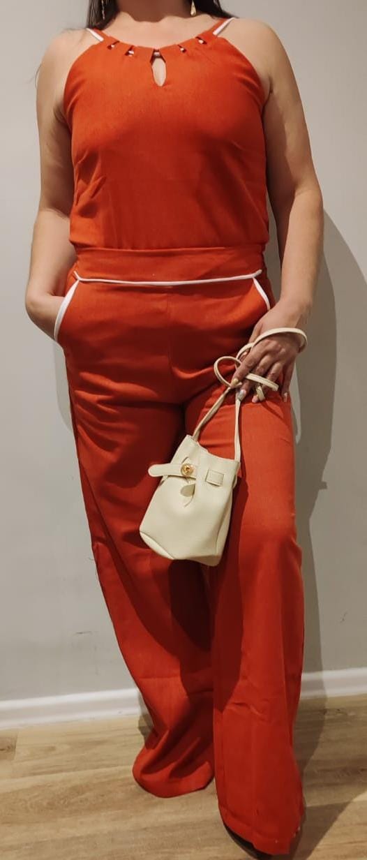 Conjunto ellise color ladrillo con bolsillo laterales