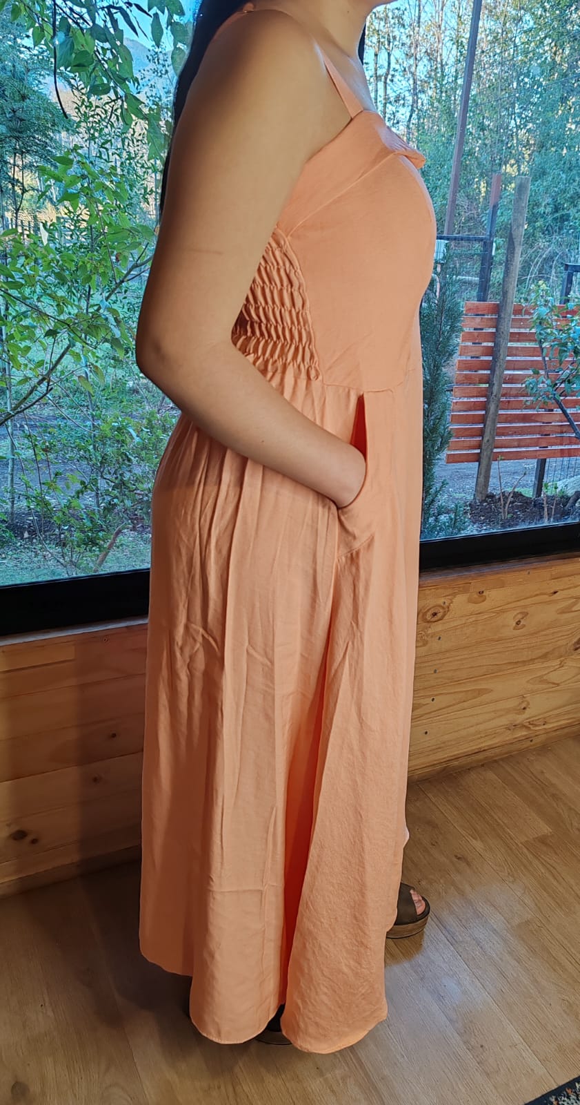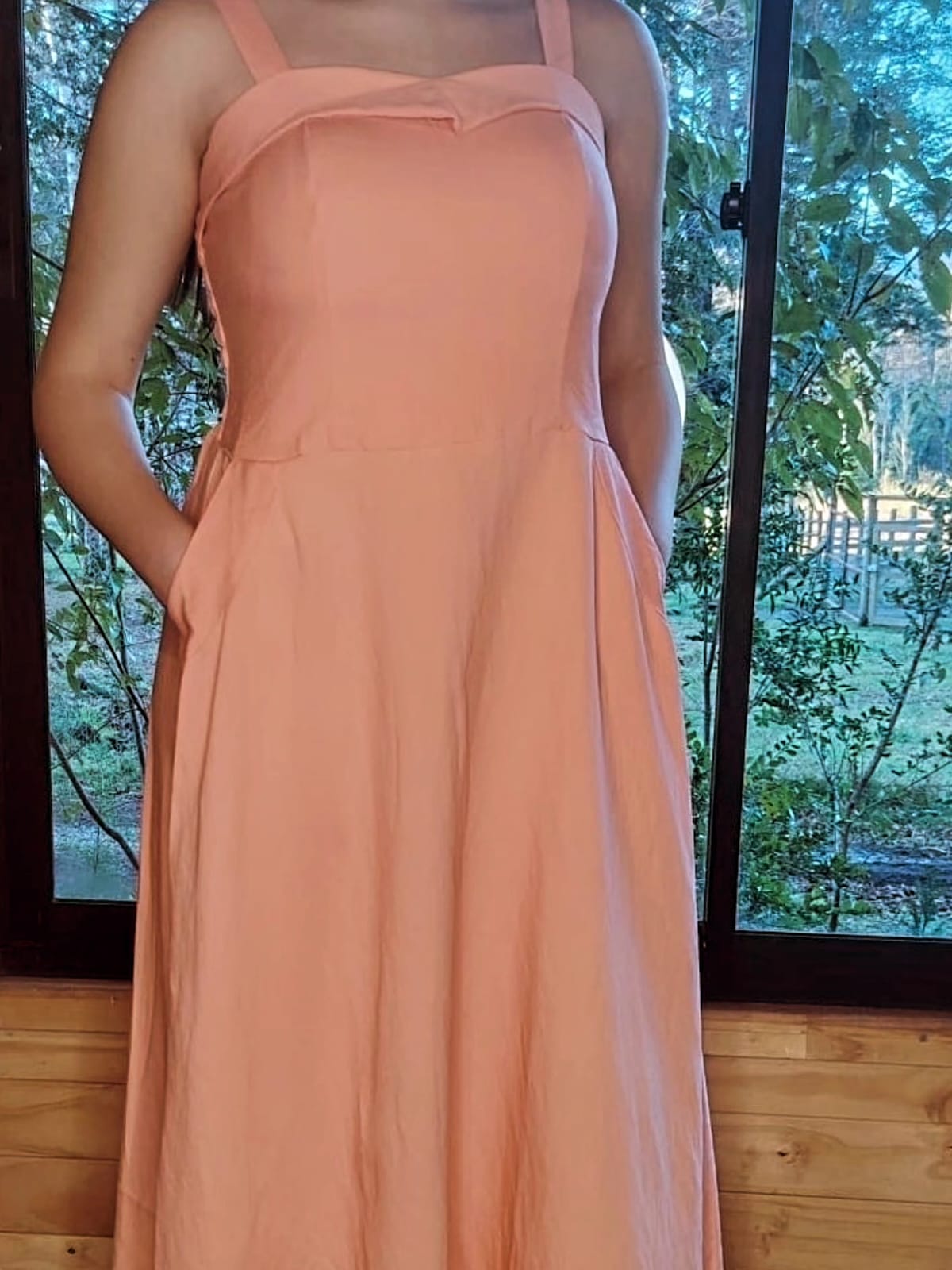 Vestido María con bolsillos color damasco